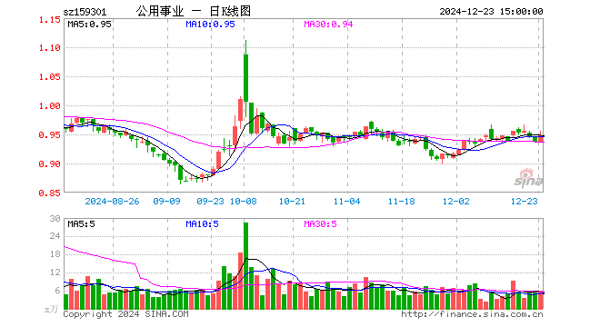 公用事业ETF(159301)业绩比较基准为中证全指公用事业指数收益率,管理人为华夏基金管理有限公司,基金经理为杨斯琪,成立(2024-07-10)以来回报为-5.11%,近一个月回报为2.96%。
