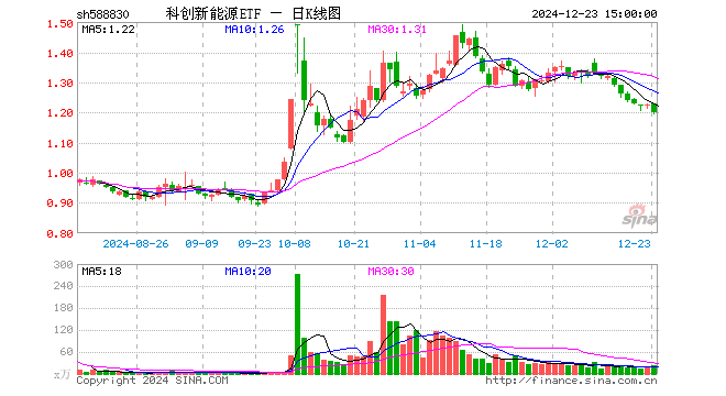 12月23日,科创新能源ETF(588830)跌2.12%,成交额2783.00万元。当日份额增加1000.00万份,最新份额为3.66亿份,近20个交易日份额减少1300.00万份。最新资产净值计算值为4.38亿元。
