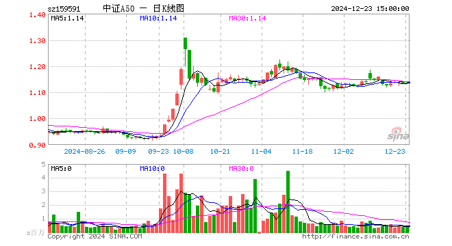 12月23日,中证A50ETF(159591)涨0.09%,成交额5423.25万元。当日份额减少150.00万份,最新份额为19.78亿份,近20个交易日份额减少1.08亿份。最新资产净值计算值为22.45亿元。