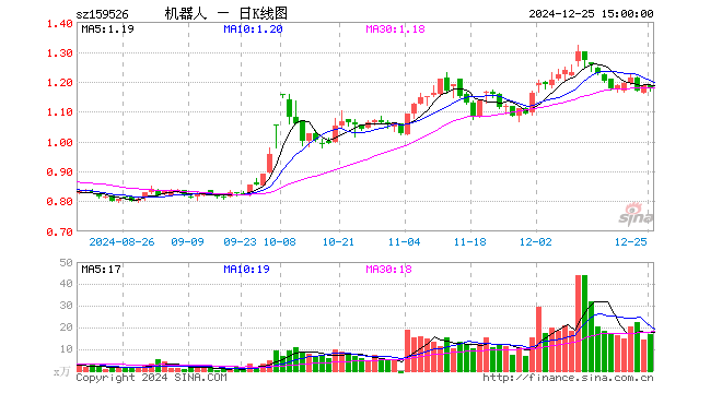 12月25日,机器人指数ETF(159526)跌0.76%,成交额1979.41万元。当日份额增加300.00万份,最新份额为1.36亿份,近20个交易日份额增加7800.00万份。最新资产净值计算值为1.60亿元。