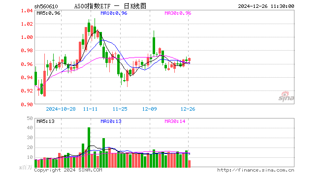 12月26日,截止午间收盘,A500指数ETF(560610)涨0.41%,报0.968元,成交额6.78亿元。A500指数ETF(560610)重仓股方面,贵州茅台截止午盘涨0.05%,宁德时代跌1.45%,中国平安跌0.61%,招商银行跌0.03%,美的集团跌0.17%,长江电力跌1.14%,紫金矿业涨0.64%,兴业银行跌0.16%,五粮液跌0.34%,比亚迪涨0.01%。
