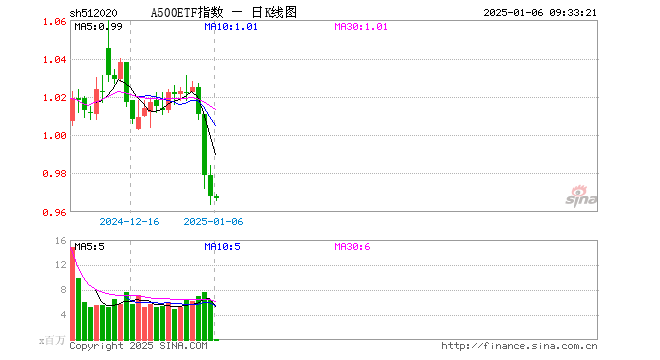 1月6日,A500ETF指数(512020)开盘涨0.00%,报0.968元。A500ETF指数(512020)重仓股方面,贵州茅台开盘跌1.49%,宁德时代涨0.14%,中国平安涨0.50%,招商银行涨0.62%,美的集团跌0.01%,长江电力涨0.34%,东方财富跌1.18%,中信证券跌0.63%,五粮液跌2.58%,兴业银行涨0.48%。
