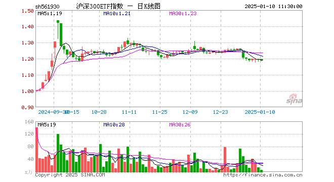 沪深300ETF指数(561930)业绩比较基准为沪深300指数收益率,管理人为招商基金管理有限公司,基金经理为苏燕青、房俊一,成立(2024-09-06)以来回报为19.48%,近一个月回报为-4.44%。