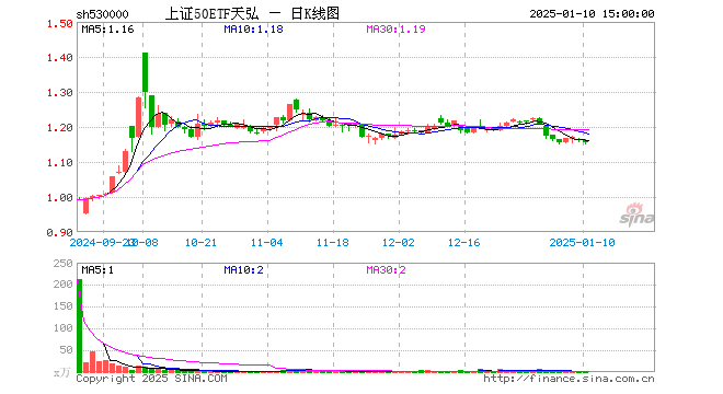 1月10日,上证50ETF天弘(530000)跌0.77%,成交额180.68万元。当日份额减少100.00万份,最新份额为17.82亿份,近20个交易日份额增加3600.00万份。最新资产净值计算值为20.55亿元。
