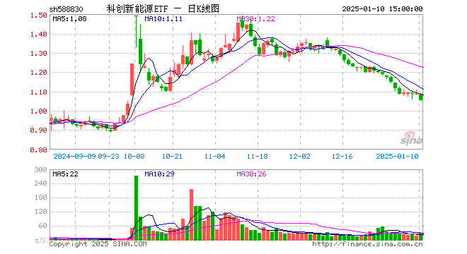 1月10日,科创新能源ETF(588830)跌3.13%,成交额3176.28万元。当日份额增加1500.00万份,最新份额为3.40亿份,近20个交易日份额增加200.00万份。最新资产净值计算值为3.57亿元。