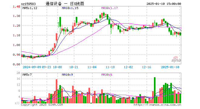 1月10日,通信设备ETF(159583)跌3.10%,成交额679.87万元。当日份额增加100.00万份,最新份额为4829.65万份,近20个交易日份额增加1300.00万份。最新资产净值计算值为5282.18万元。