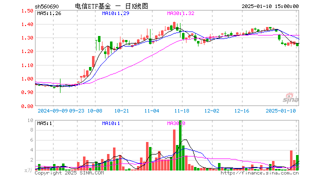 1月10日,电信ETF基金(560690)跌2.60%,成交额373.55万元。当日份额增加150.00万份,最新份额为1663.90万份,近20个交易日份额增加375.00万份。最新资产净值计算值为2047.93万元。