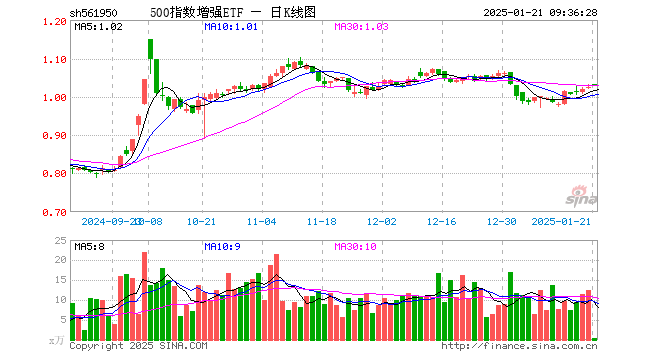 1月21日,500指数增强ETF(561950)开盘涨0.59%,报1.031元。500指数增强ETF(561950)重仓股方面,国元证券开盘涨0.63%,格林美涨0.77%,宇通客车涨1.69%,欣旺达涨0.46%,中集集团涨0.13%,健康元涨0.28%,厦门钨业涨0.61%,远兴能源涨0.18%,均胜电子涨0.35%,中鼎股份涨0.00%。