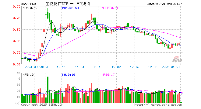 1月21日,生物疫苗ETF(562860)开盘涨0.17%,报0.592元。生物疫苗ETF(562860)重仓股方面,智飞生物开盘涨0.48%,万泰生物涨0.03%,沃森生物涨0.43%,华兰生物涨1.21%,康泰生物涨0.27%,长春高新涨0.43%,君实生物涨0.46%,复星医药涨0.17%,甘李药业涨0.23%,百济神州涨0.45%。