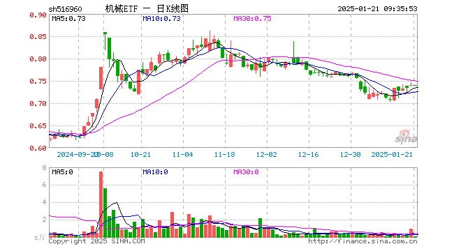 机械ETF(516960)业绩比较基准为中证细分机械设备产业主题指数收益率,管理人为国泰基金管理有限公司,基金经理为苗梦羽,成立(2021-04-07)以来回报为-25.85%,近一个月回报为-2.16%。