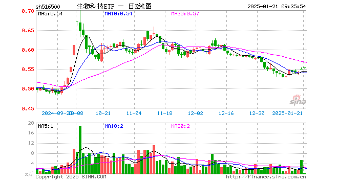 生物科技ETF(516500)业绩比较基准为中证生物科技主题指数收益率,管理人为华夏基金管理有限公司,基金经理为李俊,成立(2021-03-04)以来回报为-44.99%,近一个月回报为-5.95%。