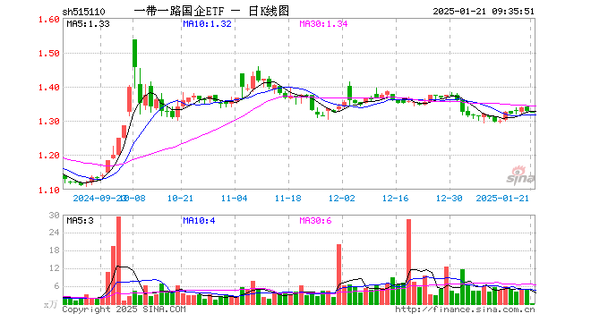 一带一路国企ETF(515110)业绩比较基准为中证国企一带一路指数收益率,管理人为易方达基金管理有限公司,基金经理为刘树荣,成立(2019-11-06)以来回报为32.82%,近一个月回报为-1.46%。