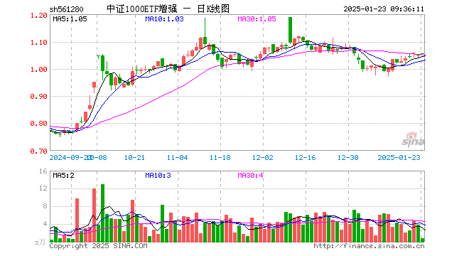 1月23日,中证1000ETF增强(561280)开盘涨0.67%,报1.055元。中证1000ETF增强(561280)重仓股方面,尚太科技开盘涨1.17%,中远海特涨0.59%,中宠股份涨0.00%,氯碱化工涨0.83%,沪光股份涨2.20%,通行宝涨0.71%,紫江企业涨0.46%,运达股份涨0.60%,生益电子涨0.62%,芯动联科涨0.17%。