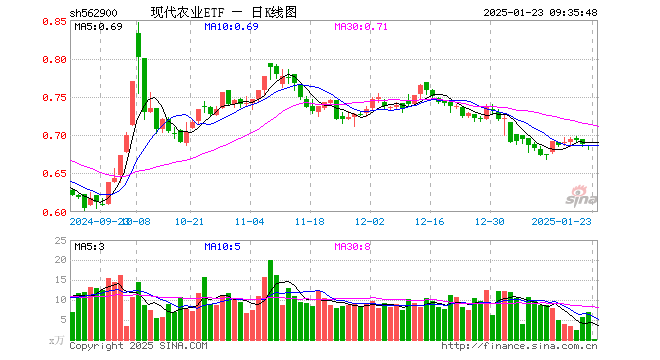 现代农业ETF(562900)业绩比较基准为中证现代农业主题指数收益率,管理人为易方达基金管理有限公司,基金经理为宋钊贤,成立(2021-12-02)以来回报为-31.59%,近一个月回报为-6.67%。