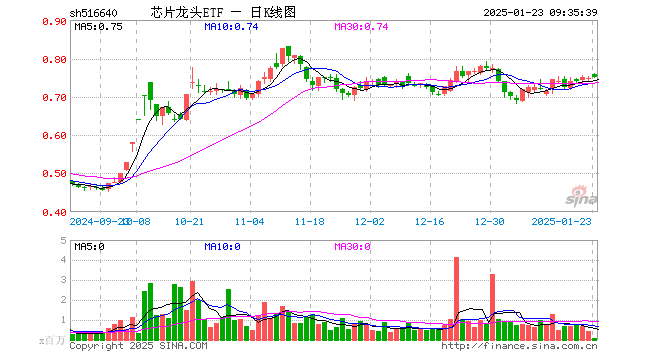 1月23日,芯片龙头ETF(516640)开盘涨1.47%,报0.759元。芯片龙头ETF(516640)重仓股方面,中芯国际开盘涨2.55%,海光信息涨1.03%,寒武纪涨1.39%,北方华创涨1.06%,韦尔股份涨1.08%,中微公司涨1.28%,澜起科技涨2.36%,兆易创新涨0.58%,长电科技涨1.59%,紫光国微涨1.22%。