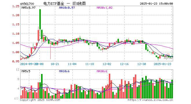1月23日,电力ETF基金(561700)涨0.10%,成交额750.67万元。当日份额增加50.00万份,最新份额为1.06亿份,近20个交易日份额增加650.00万份。最新资产净值计算值为1.03亿元。