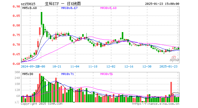 1月23日,恒生生物科技ETF(159615)跌0.15%,成交额3447.07万元。当日份额减少700.00万份,最新份额为4.90亿份,近20个交易日份额减少1100.00万份。最新资产净值计算值为3.29亿元。