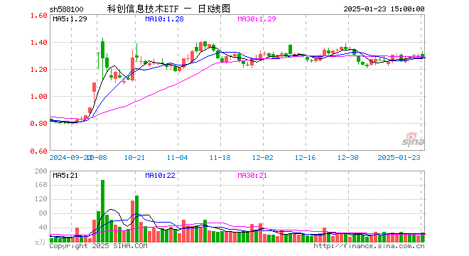 1月23日,科创信息技术ETF(588100)跌1.00%,成交额3286.34万元。当日份额减少350.00万份,最新份额为2.70亿份,近20个交易日份额减少1400.00万份。最新资产净值计算值为3.46亿元。