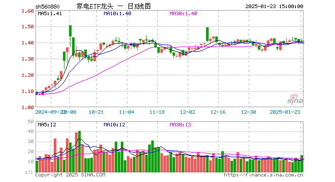 1月23日,家电ETF龙头(560880)跌0.07%,成交额2303.72万元。当日份额减少150.00万份,最新份额为3.63亿份,近20个交易日份额减少450.00万份。最新资产净值计算值为5.07亿元。