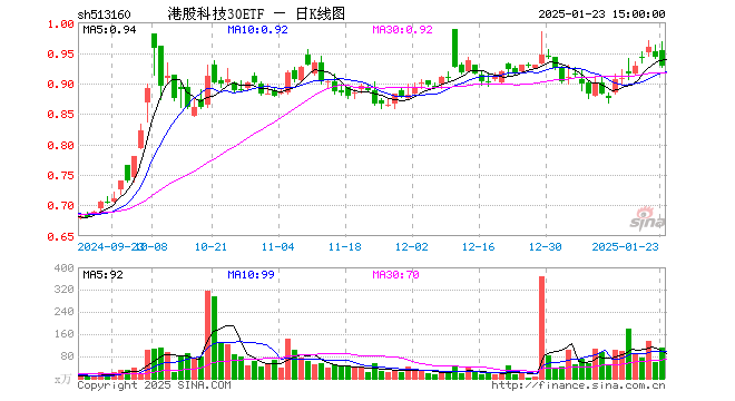 1月23日,港股科技30ETF(513160)跌1.59%,成交额1.07亿元。当日份额减少100.00万份,最新份额为1.47亿份,近20个交易日份额增加4600.00万份。最新资产净值计算值为1.36亿元。