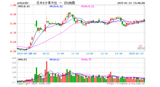 1月23日,芯片ETF易方达(516350)跌1.32%,成交额4629.71万元。当日份额增加700.00万份,最新份额为13.58亿份,近20个交易日份额减少8900.00万份。最新资产净值计算值为11.13亿元。