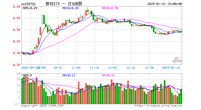 1月23日,新材料50ETF(159761)跌0.20%,成交额711.71万元。当日份额减少100.00万份,最新份额为3.08亿份,近20个交易日份额减少400.00万份。最新资产净值计算值为1.50亿元。