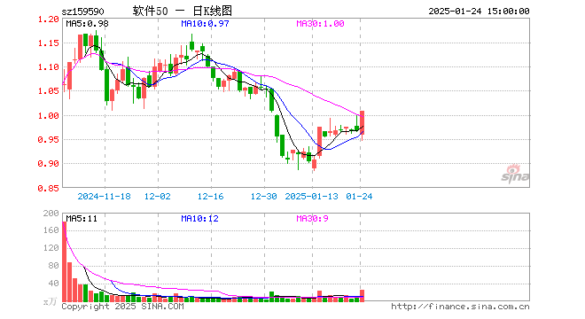 1月24日,软件50ETF(159590)涨4.24%,成交额2420.83万元。当日份额减少800.00万份,最新份额为1.05亿份,近20个交易日份额增加1000.00万份。最新资产净值计算值为1.06亿元。