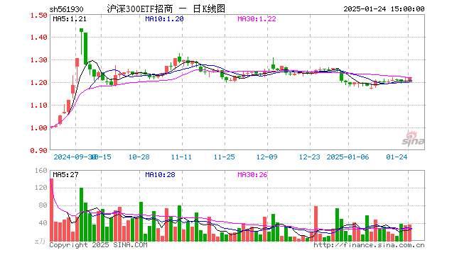 1月24日,沪深300ETF招商(561930)涨1.00%,成交额4403.44万元。当日份额增加1500.00万份,最新份额为7.18亿份,近20个交易日份额减少1200.00万份。最新资产净值计算值为8.71亿元。