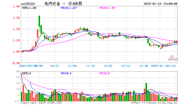 1月24日,电网设备ETF(159326)涨1.77%,成交额591.67万元。当日份额减少200.00万份,最新份额为5526.55万份,近20个交易日份额减少500.00万份。最新资产净值计算值为6058.21万元。