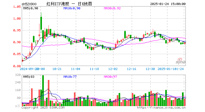 1月24日,红利ETF港股(520900)涨0.56%,成交额6598.60万元。当日份额增加200.00万份,最新份额为26.10亿份,近20个交易日份额增加1.76亿份。最新资产净值计算值为23.02亿元。