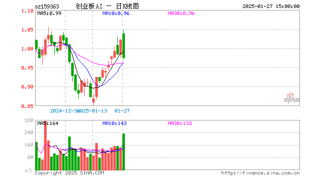 1月27日,创业板人工智能ETF华宝(159363)跌4.79%,成交额2.33亿元。当日份额增加1.53亿份,最新份额为8.09亿份,近20个交易日份额增加3.05亿份。最新资产净值计算值为7.86亿元。