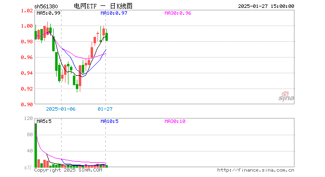 1月27日,电网ETF(561380)跌1.61%,成交额392.92万元。当日份额减少100.00万份,最新份额为1.02亿份,近20个交易日份额减少1300.00万份。最新资产净值计算值为1.00亿元。