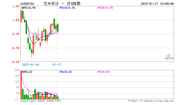 1月27日,科创芯片设计ETF(588780)跌2.55%,成交额1633.03万元。当日份额增加400.00万份,最新份额为1.10亿份,近20个交易日份额减少1000.00万份。最新资产净值计算值为1.05亿元。