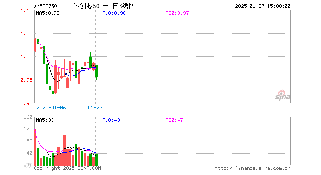 1月27日,科创芯片50ETF(588750)跌2.94%,成交额3430.80万元。当日份额增加600.00万份,最新份额为12.94亿份,近20个交易日份额增加7.29亿份。最新资产净值计算值为12.32亿元。