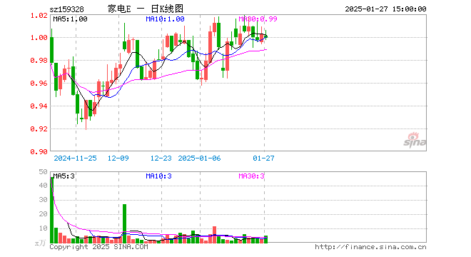 1月27日,家电ETF易方达(159328)跌0.40%,成交额467.67万元。当日份额减少200.00万份,最新份额为1.64亿份,近20个交易日份额减少400.00万份。最新资产净值计算值为1.64亿元。