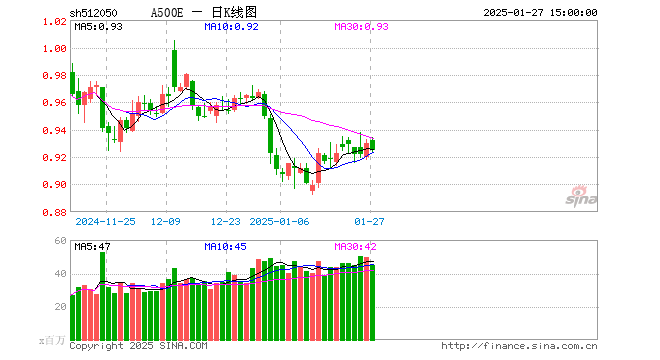 1月27日,A500ETF基金(512050)跌0.54%,成交额41.85亿元。当日份额减少2.13亿份,最新份额为214.97亿份,近20个交易日份额增加17.37亿份。最新资产净值计算值为198.59亿元。