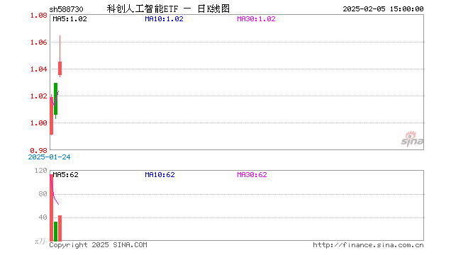 2月5日,科创人工智能ETF(588730)涨3.88%,成交额4465.10万元。当日份额减少400.00万份,最新份额为1.18亿份。最新资产净值计算值为1.23亿元。