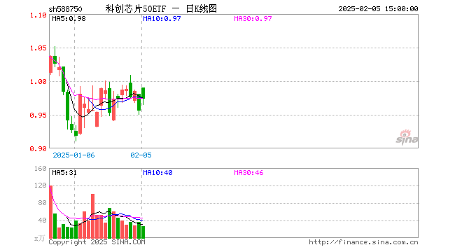 科创芯片50ETF(588750)业绩比较基准为上证科创板芯片指数收益率,管理人为汇添富基金管理股份有限公司,基金经理为孙浩,成立(2024-12-18)以来回报为-2.67%,近一个月回报为5.45%。
