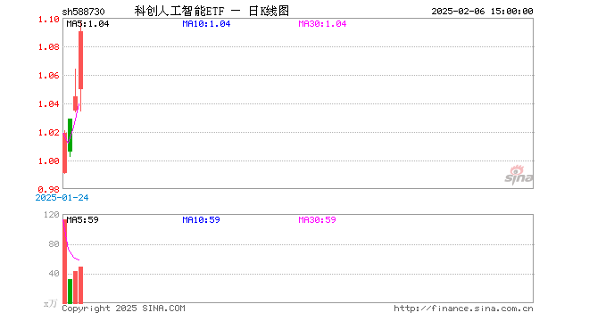 2月6日,科创人工智能ETF(588730)涨4.31%,成交额5254.52万元。当日份额增加2000.00万份,最新份额为1.38亿份。最新资产净值计算值为1.50亿元。