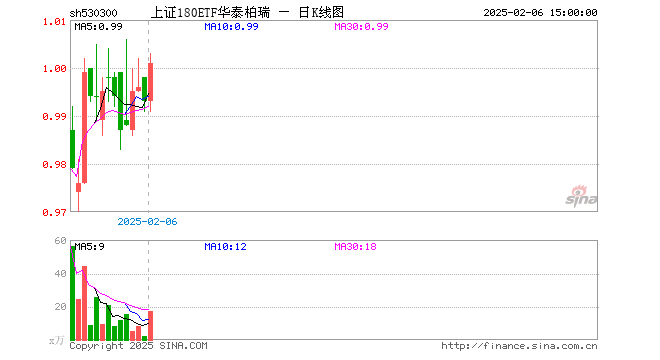 2月6日,上证180ETF华泰柏瑞(530300)涨0.81%,成交额1734.17万元。当日份额减少600.00万份,最新份额为1.78亿份。最新资产净值计算值为1.78亿元。