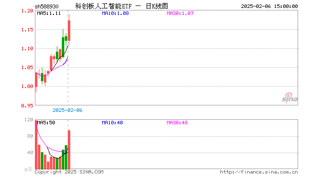 2月6日,科创板人工智能ETF(588930)涨4.83%,成交额1.09亿元。当日份额增加6000.00万份,最新份额为2.19亿份。最新资产净值计算值为2.55亿元。