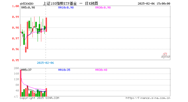 2月6日,上证180指数ETF基金(530680)涨1.12%,成交额5742.74万元。当日份额减少2000.00万份,最新份额为9.35亿份。最新资产净值计算值为9.25亿元。