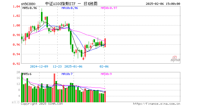 2月6日,中证A500指数ETF(563880)涨1.57%,成交额7.09亿元。当日份额增加6900.00万份,最新份额为100.49亿份,近20个交易日份额增加7.59亿份。最新资产净值计算值为97.67亿元。