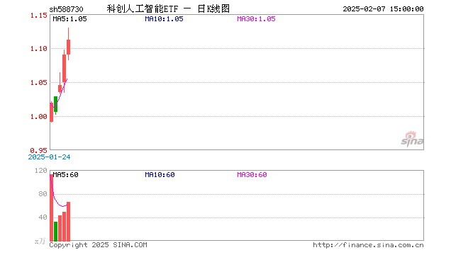 2月7日,科创人工智能ETF(588730)涨2.02%,成交额7384.79万元。当日份额增加2300.00万份,最新份额为1.61亿份。最新资产净值计算值为1.78亿元。