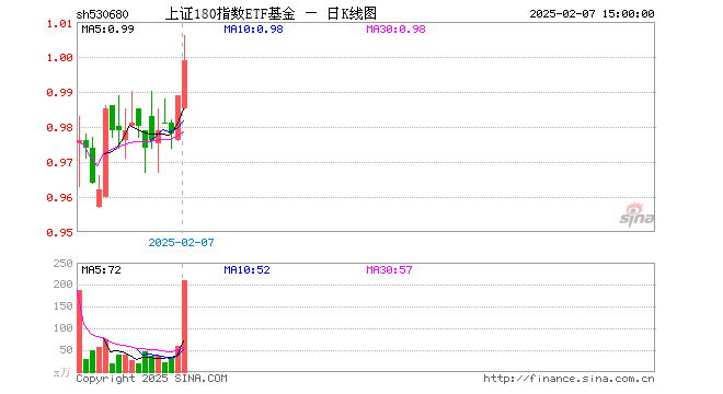 2月7日,上证180指数ETF基金(530680)涨1.01%,成交额2.11亿元。当日份额减少1.68亿份,最新份额为7.67亿份。最新资产净值计算值为7.67亿元。