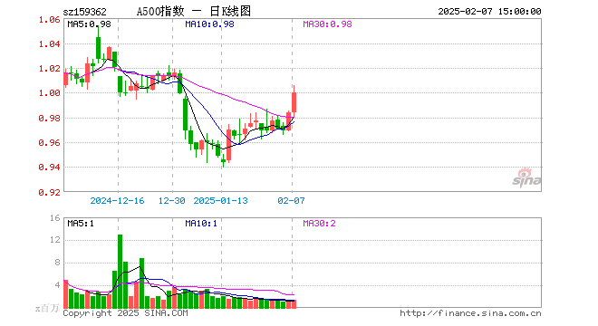 A500ETF工银(159362)业绩比较基准为中证A500指数收益率,管理人为工银瑞信基金管理有限公司,基金经理为刘伟琳、焦文龙,成立(2024-11-19)以来回报为0.58%,近一个月回报为3.83%。