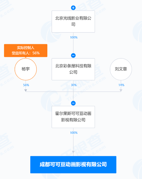 这其中,北京光线传媒100%控股了光线影业和北京彩条屋。