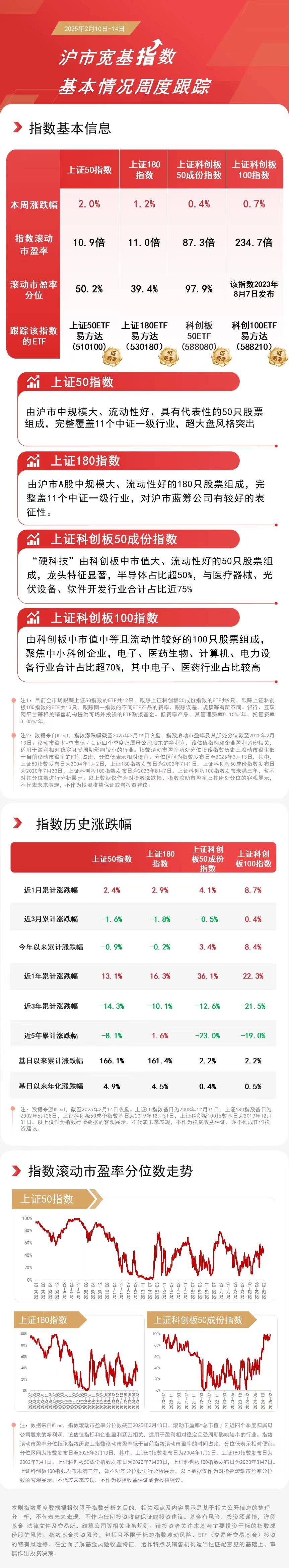 本周上证50指数上涨2.0%,上证180指数上涨1.2%,科创100指数上涨0.7%,上证科创板50成份指数上涨0.4%。
