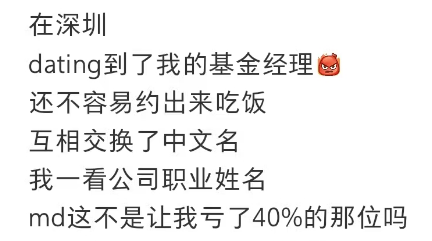 一网友的吐槽:在深圳约会约到了让我亏了40%的基金经理。。。