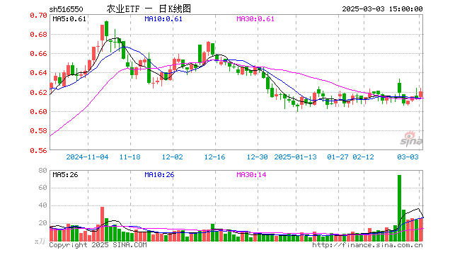 3月3日,农业ETF(516550)涨1.14%,成交额1592.56万元。当日份额减少1100.00万份,最新份额为3.59亿份,近20个交易日份额增加8600.00万份。最新资产净值计算值为2.22亿元。